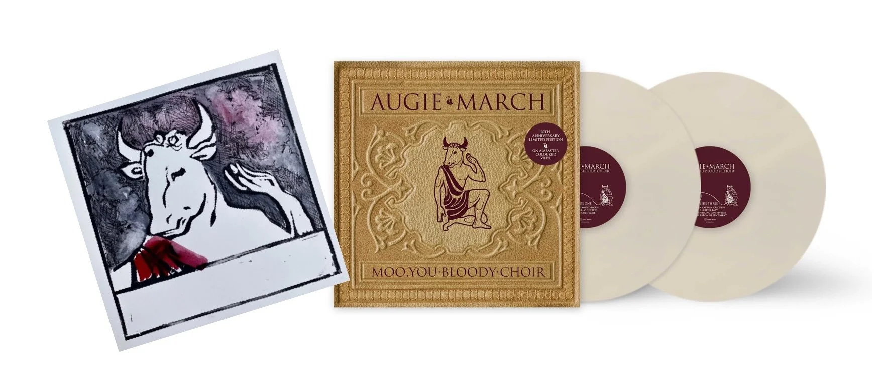 The 20th Anniversary pressing of Moo, You Bloody Choir — a limited edition 2LP on alabaster vinyl with an exclusive gold and maroon cover. Includes full lyrics and credits. Available via pre-order as well as at the April/May shows (until sold out).